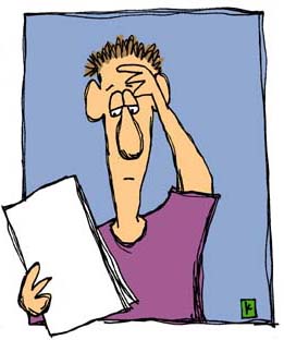 Seeing what I was up against I decided I needed a study plan. Retaking the sample exam and methodically looking up all the answers, correct as well as incorrect, I figured would be an efficient method of reintroducing me to dental trivia. An adequate number of textbooks were secured and I immersed myself. Between fulfilling my cartooning obligations and wading local area rivers fishing for smallmouth bass, afternoon upon afternoon was spent on my screened-in porch researching obscure sarcomas, enzymatic deficiencies, cranial nerve enervation, and muscle attachment locations. I reacquainted myself with basic operative, endo, prosth, and oral surgery procedures. I was often reminded why ortho had never been part of my dental repertoire and why patients with TMJ problems were quickly referred. Over and over again I compared radiographs of adenoameloblastomas, granulofibromas, traumatic cysts, hyperparathyroidism. I cringed at a lot of pictures of ugly tongues, ulcerated mucosa, and deformed faces with blacked-out eyes. I began to wish people like Sjogren, Epstein, Barr, Papillon, Lefevre, Peutz, Jeghrs, Mikulcz, Frey, Melkersson, Treacher had never been born. I spent hours on the Internet at my favorite pharmaceutical information web site,